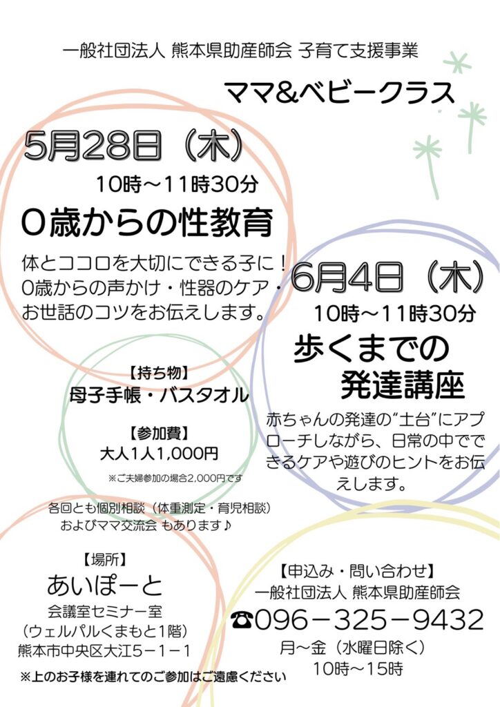 ※お申込は・お問い合わせは熊本県助産師会までお電話にてお願いいたします。